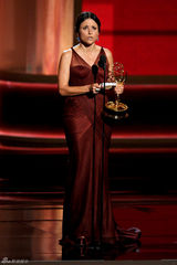北京时间9月24日上午,美国洛杉矶当地时间9月23日晚,第64届美国电视艾美奖在洛杉矶诺基亚剧院举行,图为剧情类最佳女主克莱尔-丹尼斯后台春风得意。IC/图(2012-09-24 / sina)