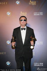 北京时间2014年3月27日晚,第八届亚洲电影大奖颁奖典礼在澳门举行。微博图文直播。图为张叔平邱伟明凭《一代宗师》获最佳美术指导,邱伟明领奖。图库稿(2014-03-27 / sina)