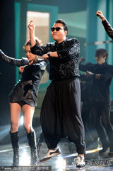 2012年第40届AMA全美音乐奖于北京时间19日9时开幕。全美音乐奖后台众星秀奖杯,鸟叔依偎说唱明星MC Hammer搞怪。图库供图(2012-11-19 / sina)